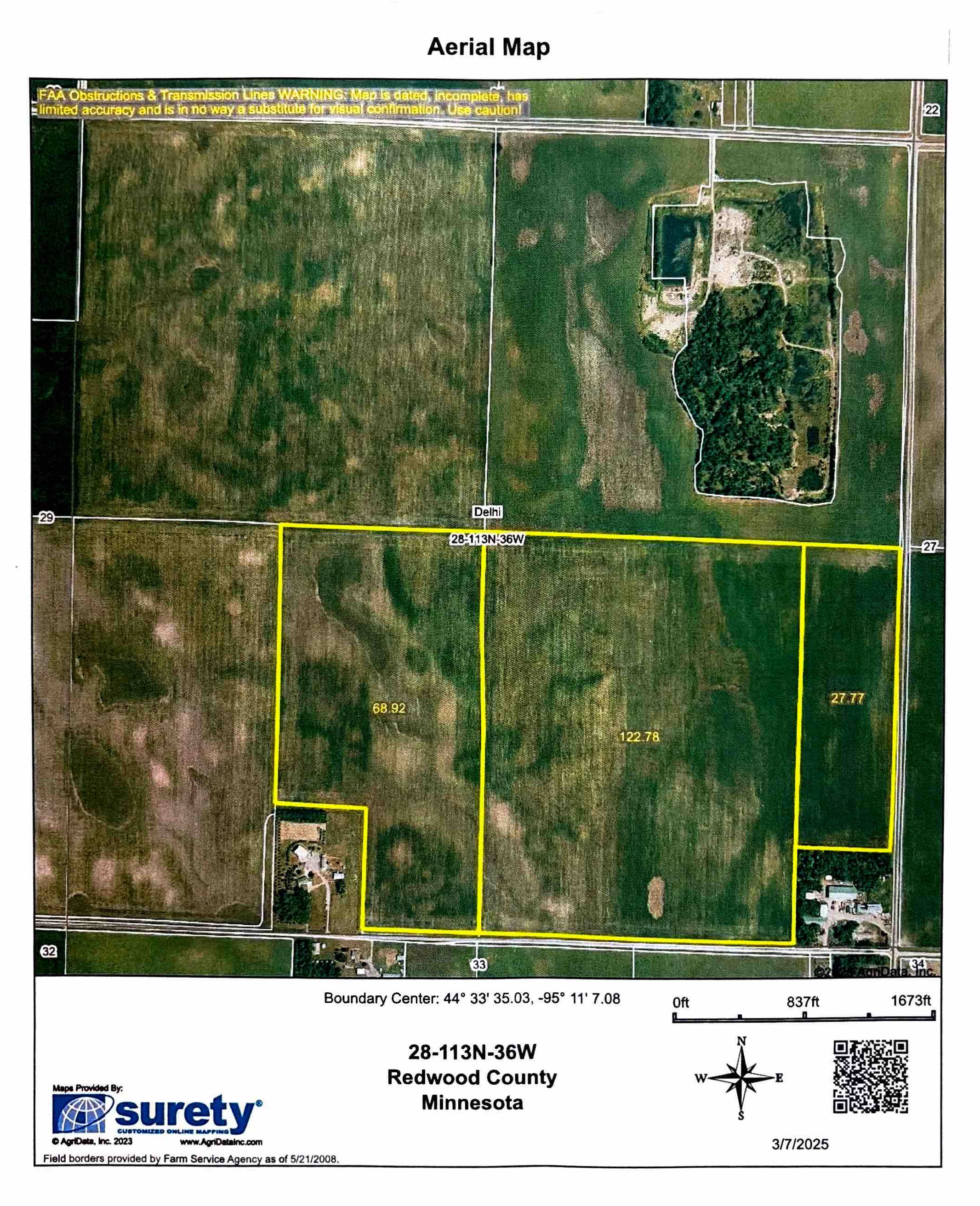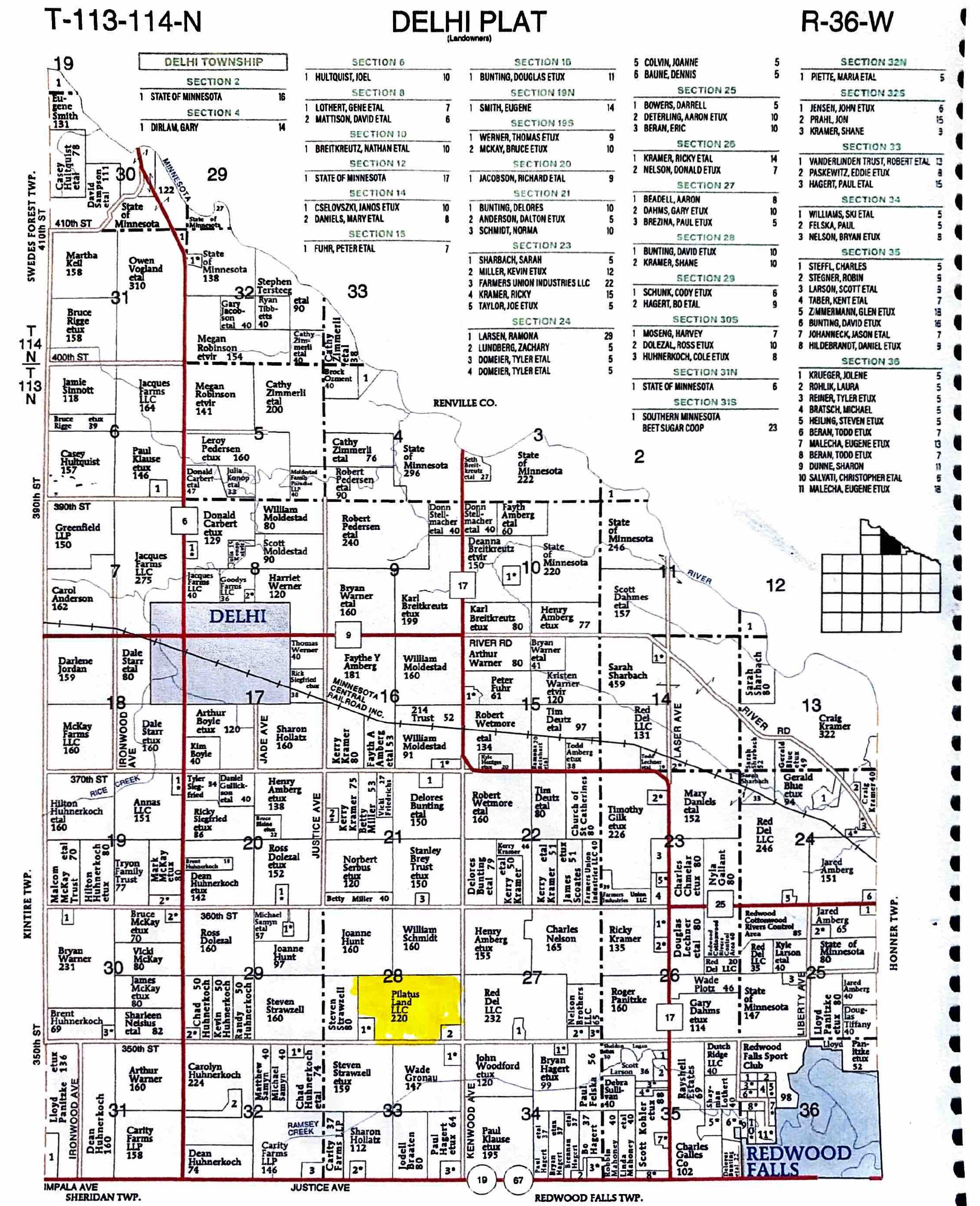 Legal Description: Redwood Co. Parcel's:# 52-028-3060; 52-028-4020; 52-028; 52-028-4060; Exact Legal description to govern to be provided by Seller @ Closing. Tracts are located in Section 28, T114N, R36W; Delhi Township; (219.85 Deeded Acres/219.47 Tillable Acres).