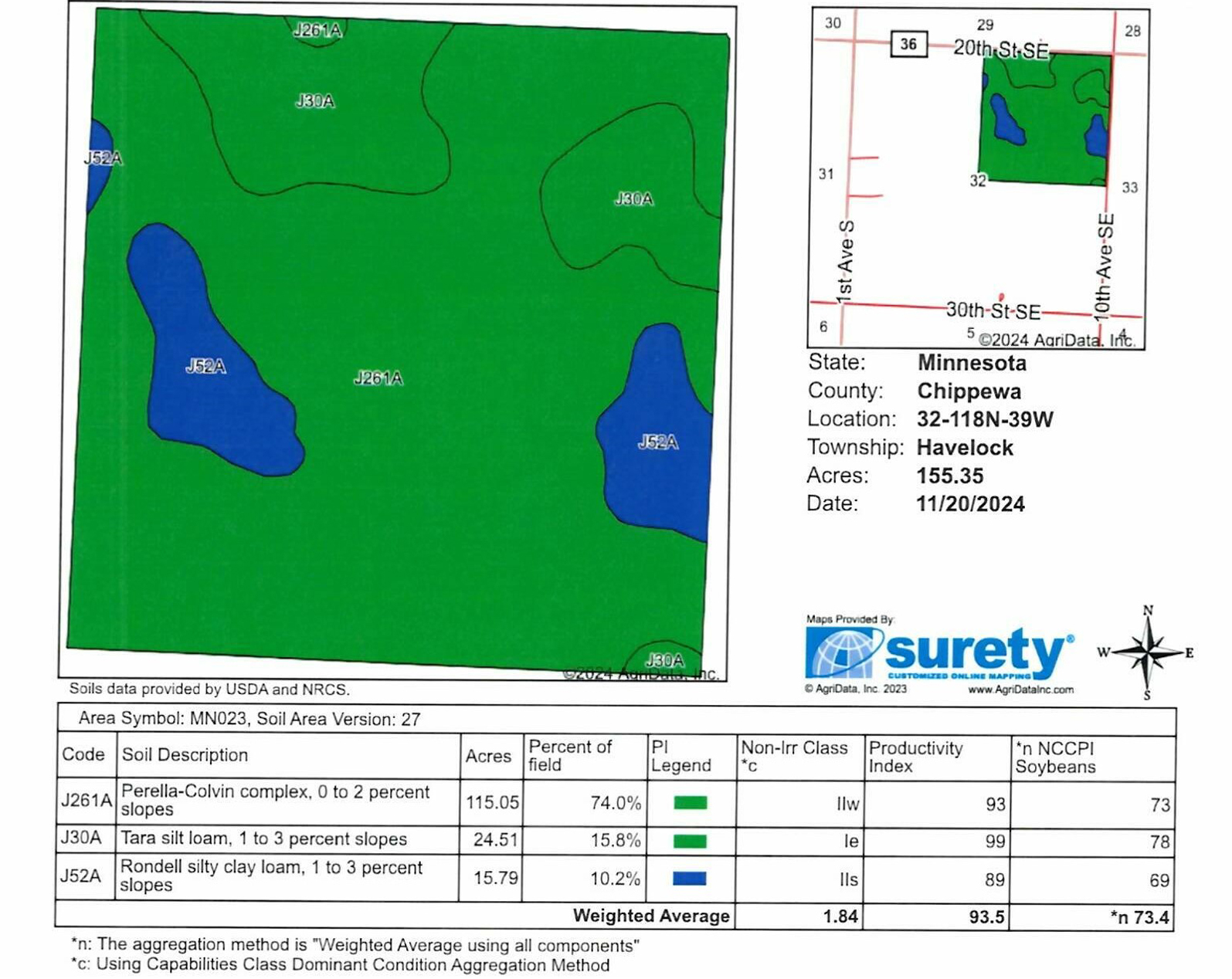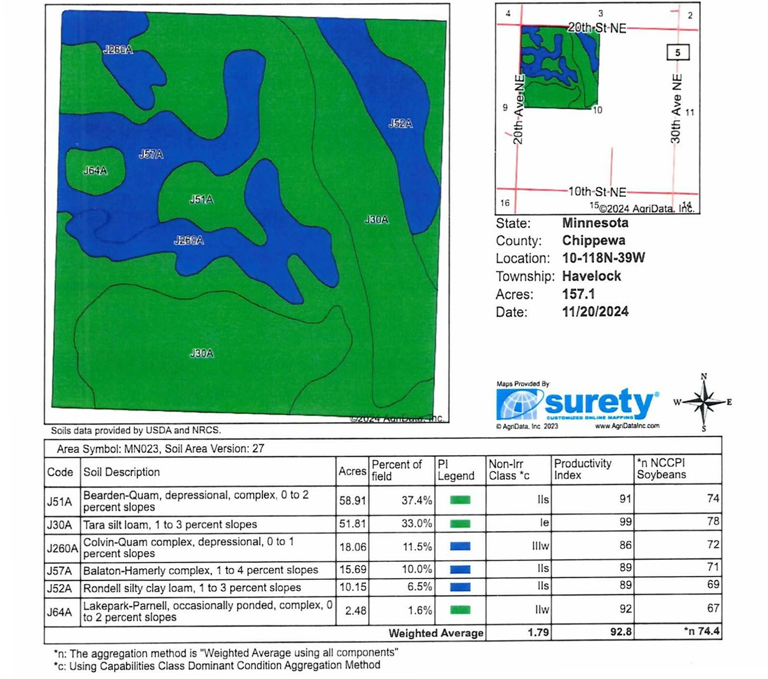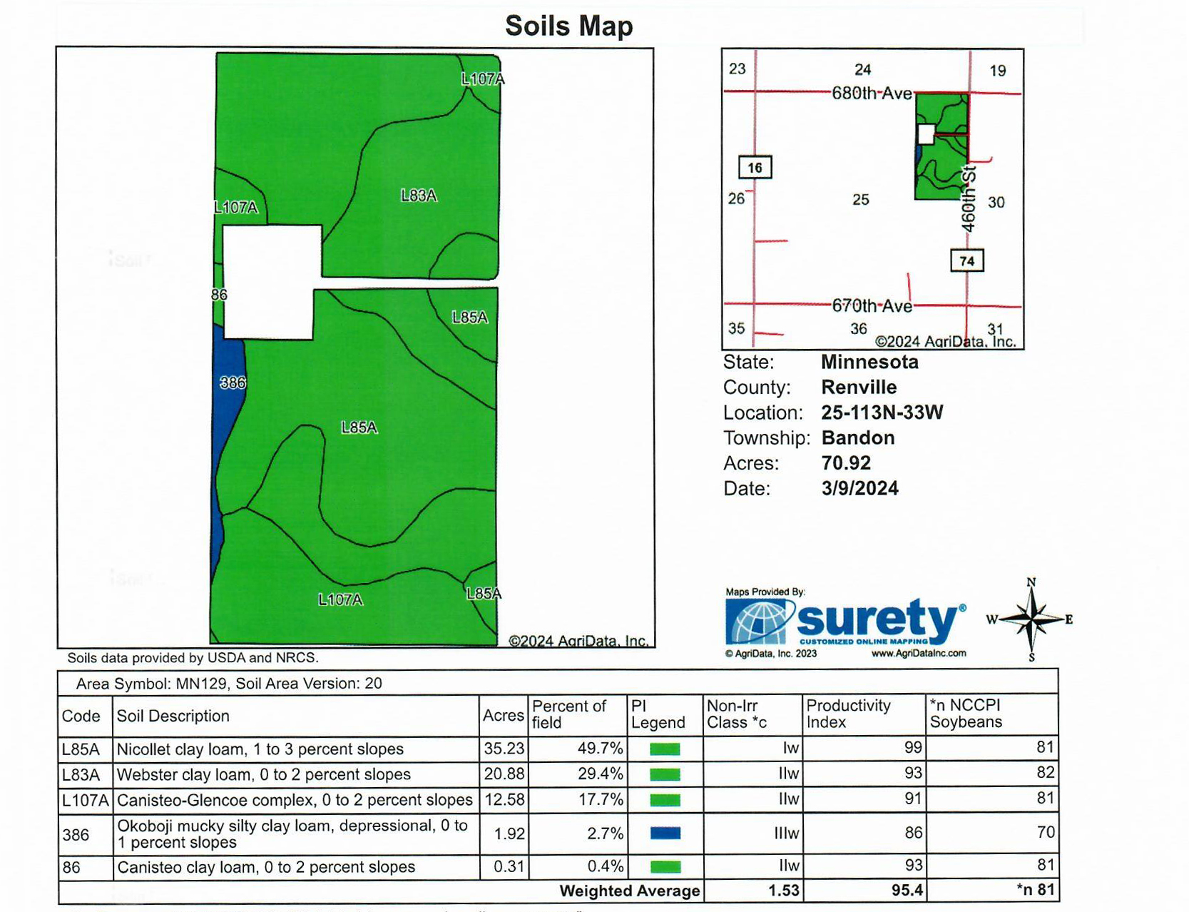 Acreage: 74.66+/- Deeded Acres/71.03+/- Tillable Acres.