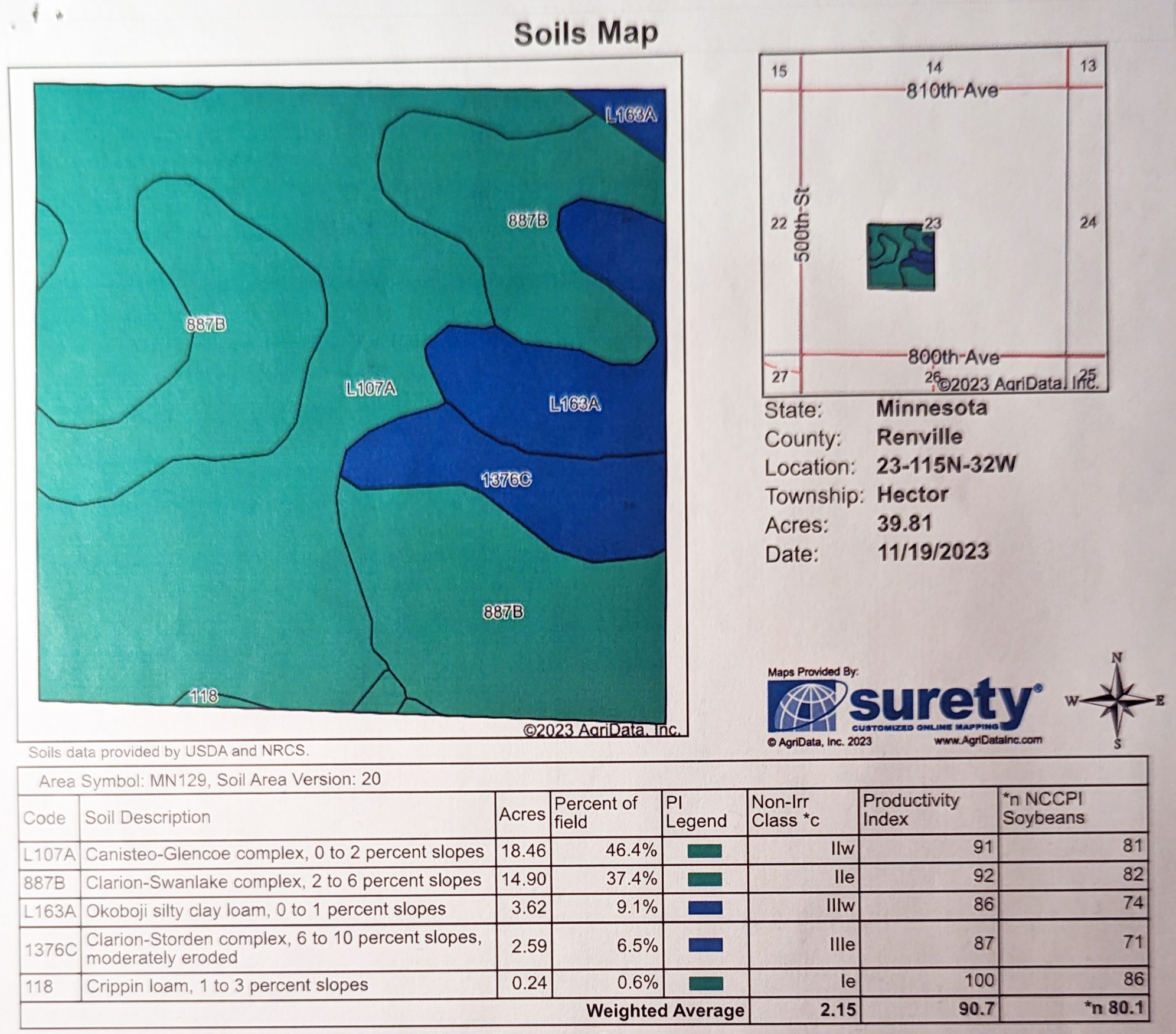 Acreage: 40± Deeded Acres/39.81± Tillable Acres.